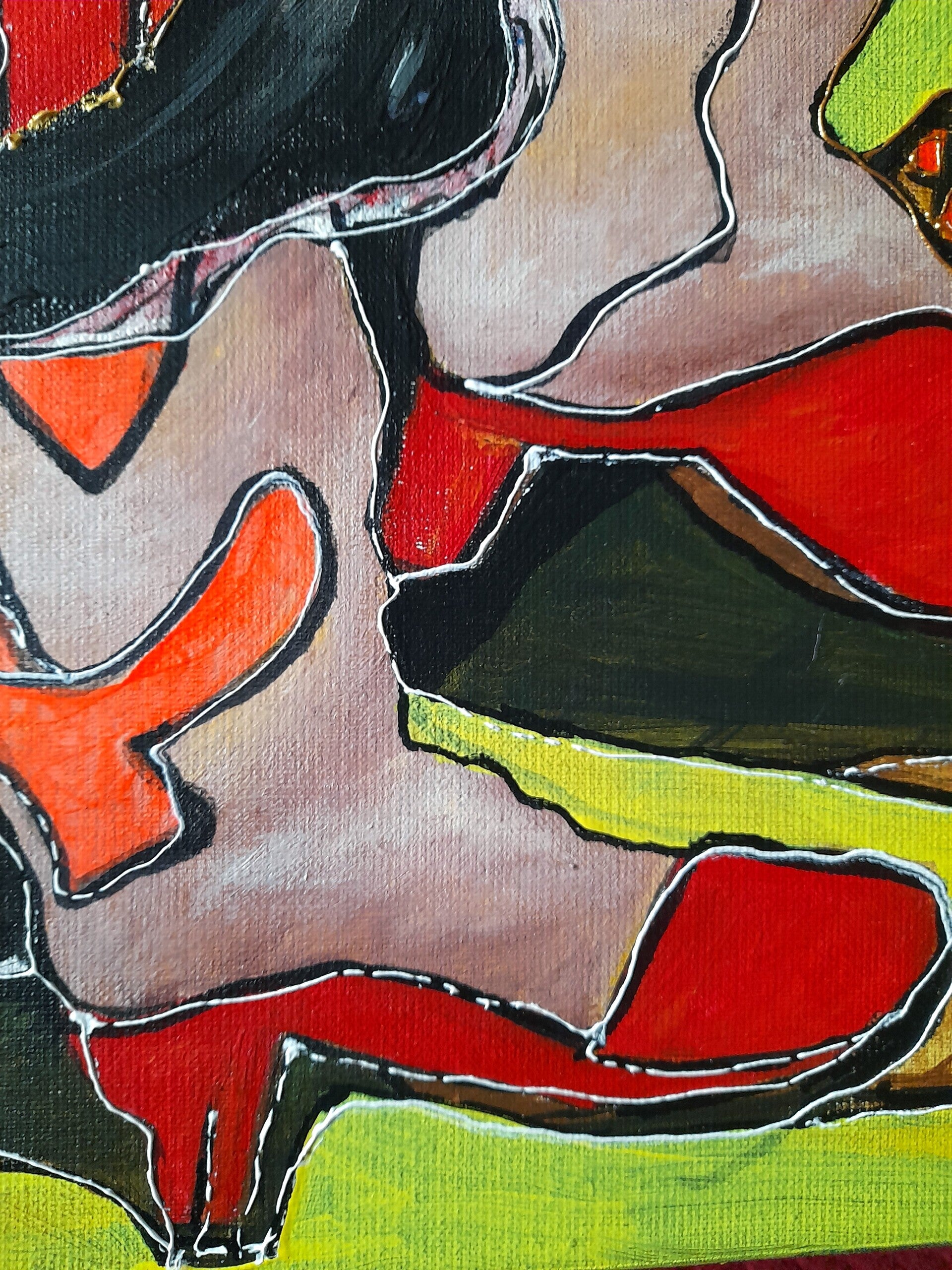 Collection 2024 , couple enchevêtré , esquissant un pas de danse , lointain cousins de Botero.Acrylique , technique mixte , avec cernes en relief. Acrylique hauteur 73 cmx largeur 60 cm , toile sur lin oeuvre unique , avec certificat d'authenticité .toile delin sur châssis bois