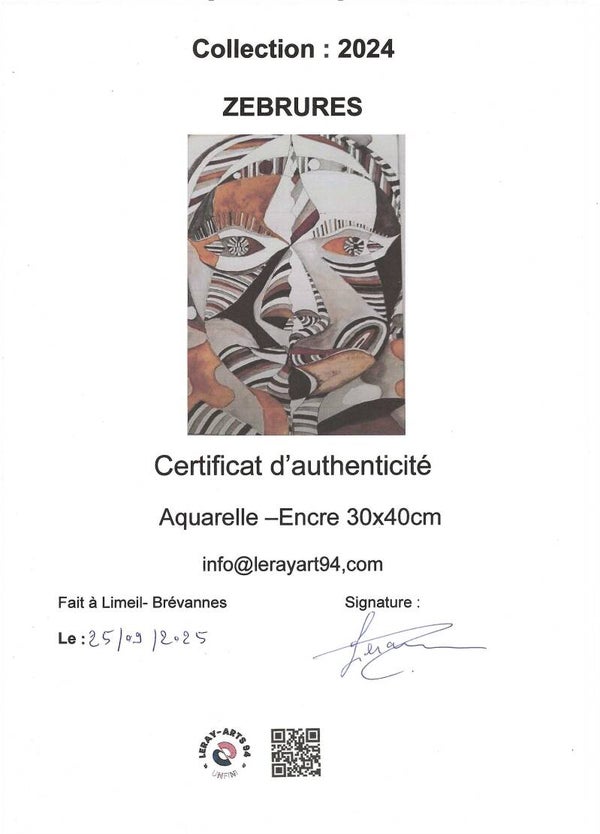 Aquarelle / Encre largeur :30 cmx hauteur 40 cm , encadrement blanc 40x50 cm , oeuvre unique sur papier , signature et certificat d'authenticité