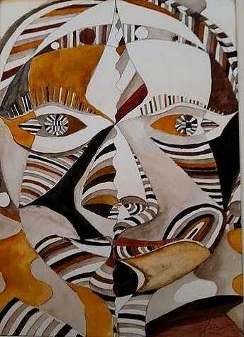 Aquarelle 30x40cm ,encadrement blanc 40x50cm , 2 personnages de profil ° 1 personnage de face.oeuvre unique avec certificat d'authenticité